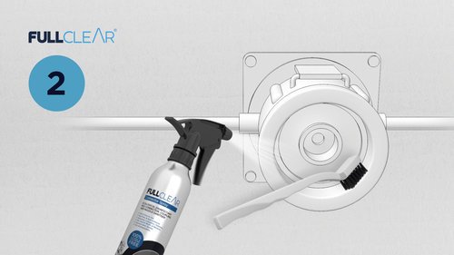Disconnect keg couplings and spray each part using the FullClear Connector Spray provided.